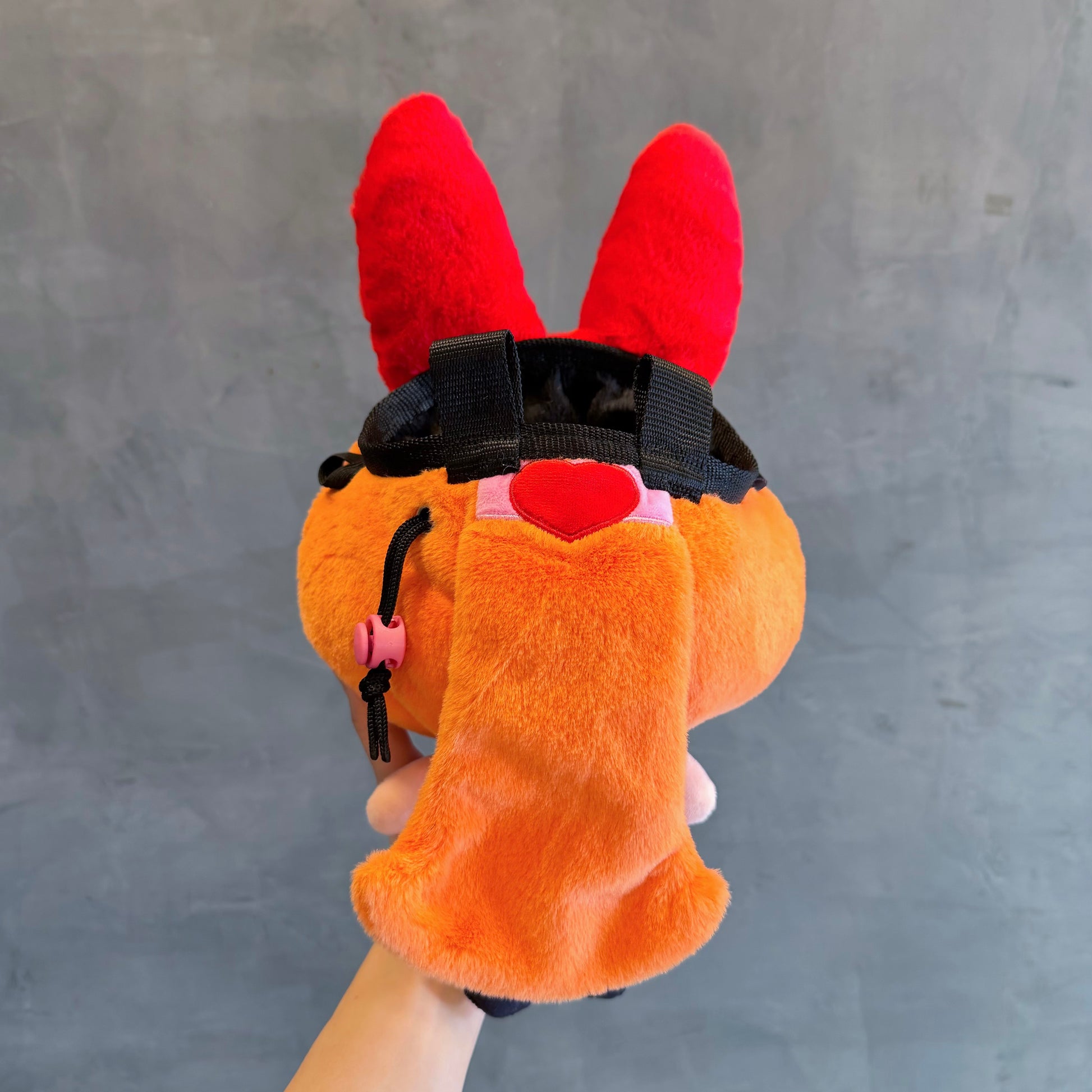 All our chalk bags and chalk buckets are made from soft, cuddly plush toy. All of them have polypropylene webbing rim, polar fleece inner bag, which makes them comfortable to the touch! They are all include parachute cord drawstring closure.