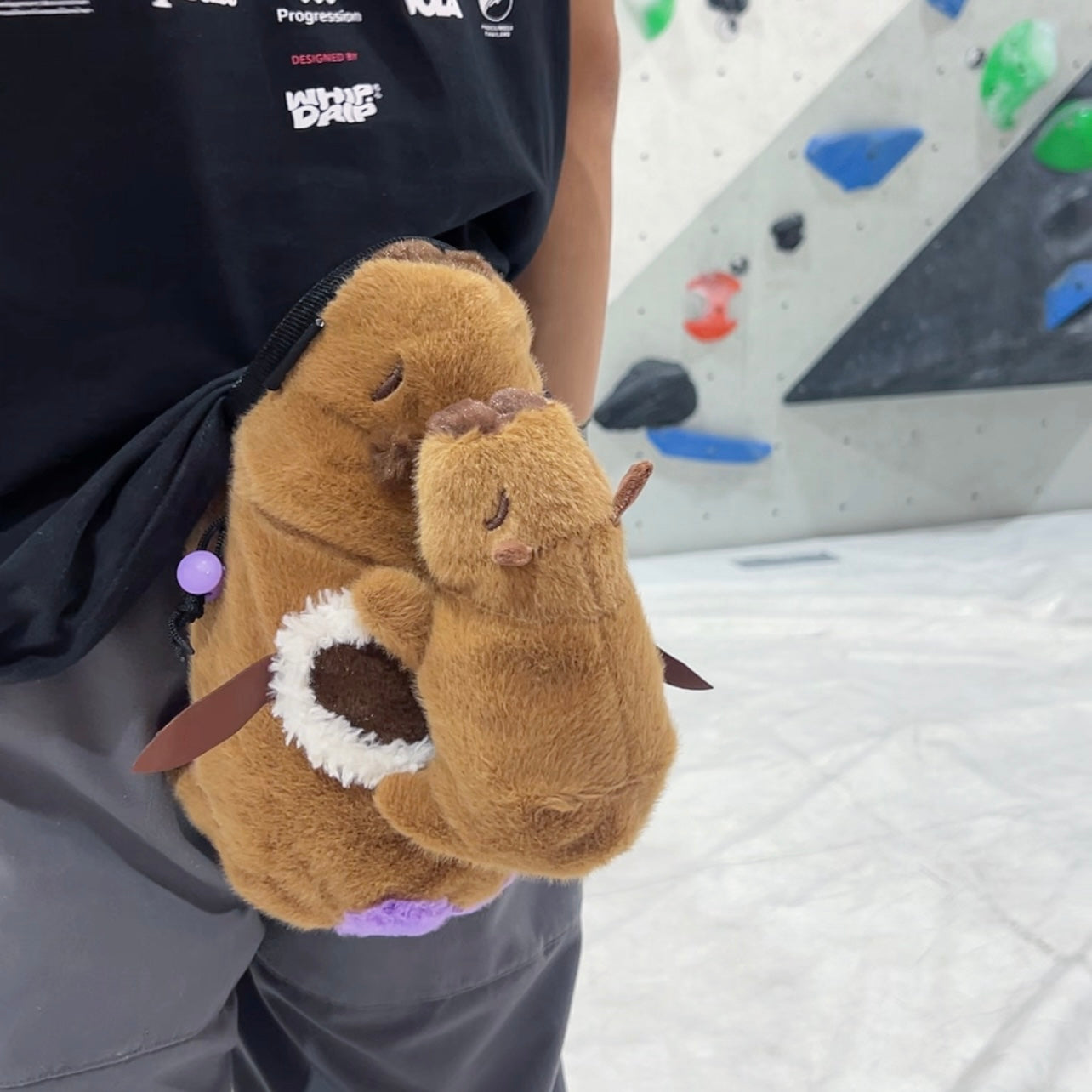 All our chalk bags and chalk buckets are made from soft, cuddly plush toy. All of them have polypropylene webbing rim, polar fleece inner bag, which makes them comfortable to the touch! They are all include parachute cord drawstring closure.