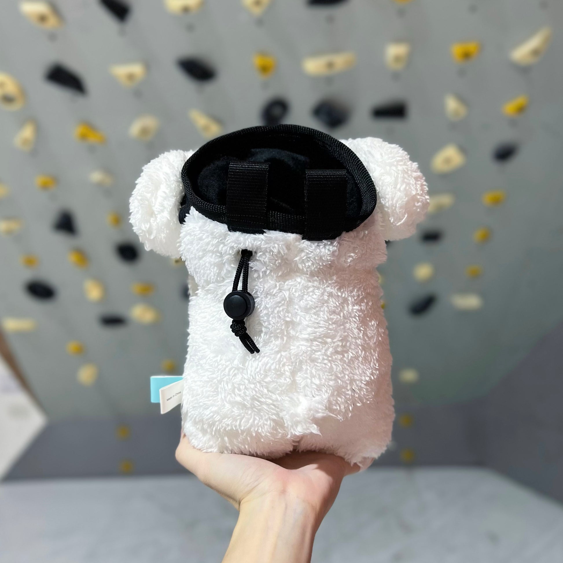 All our chalk bags and chalk buckets are made from soft, cuddly plush toy. All of them have polypropylene webbing rim, polar fleece inner bag, which makes them comfortable to the touch! They are all include parachute cord drawstring closure.